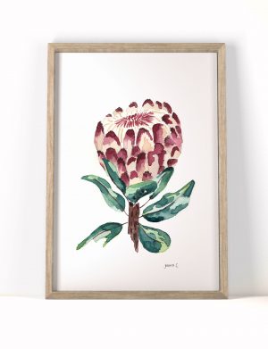 Digital print copy of the Blood Protea watercolour painting