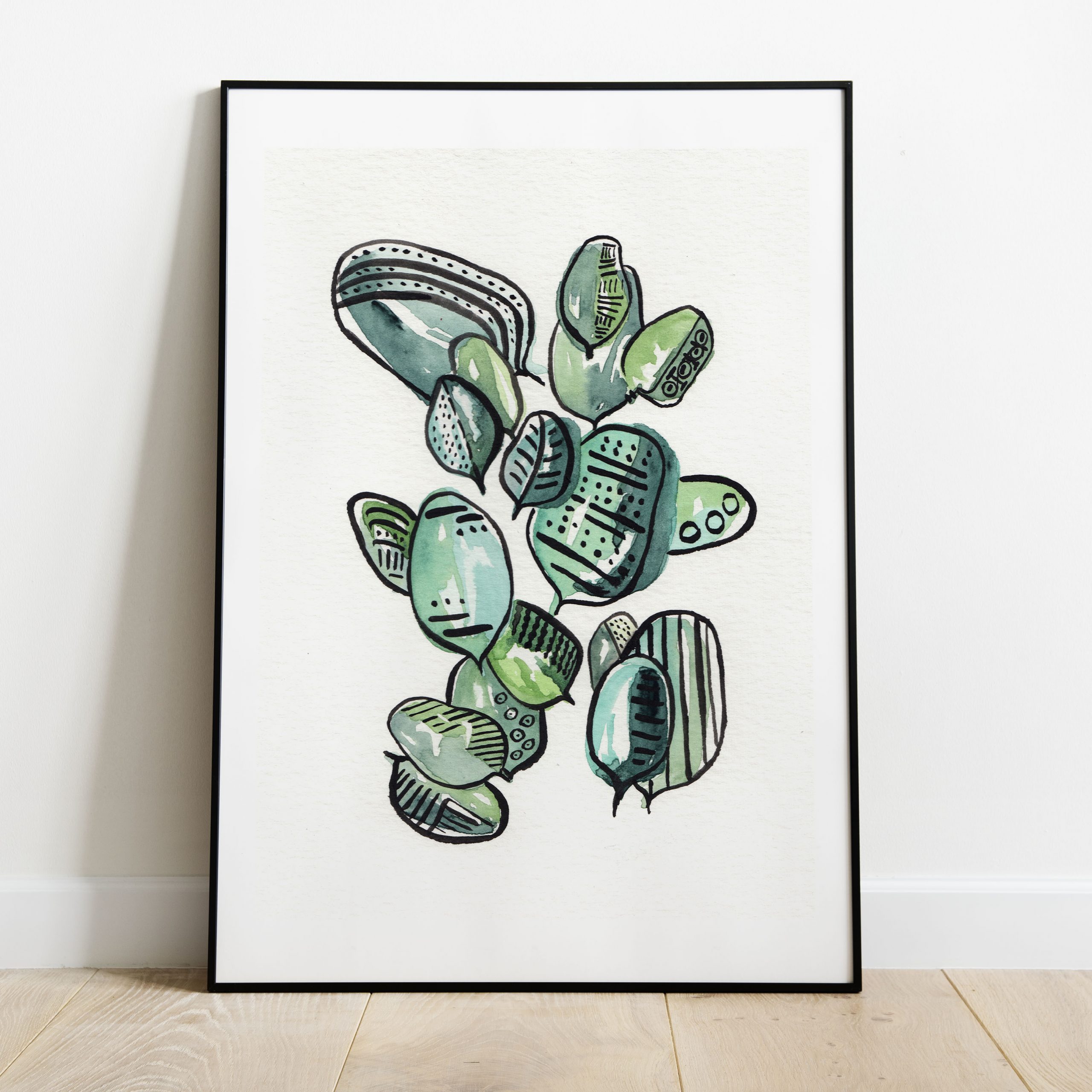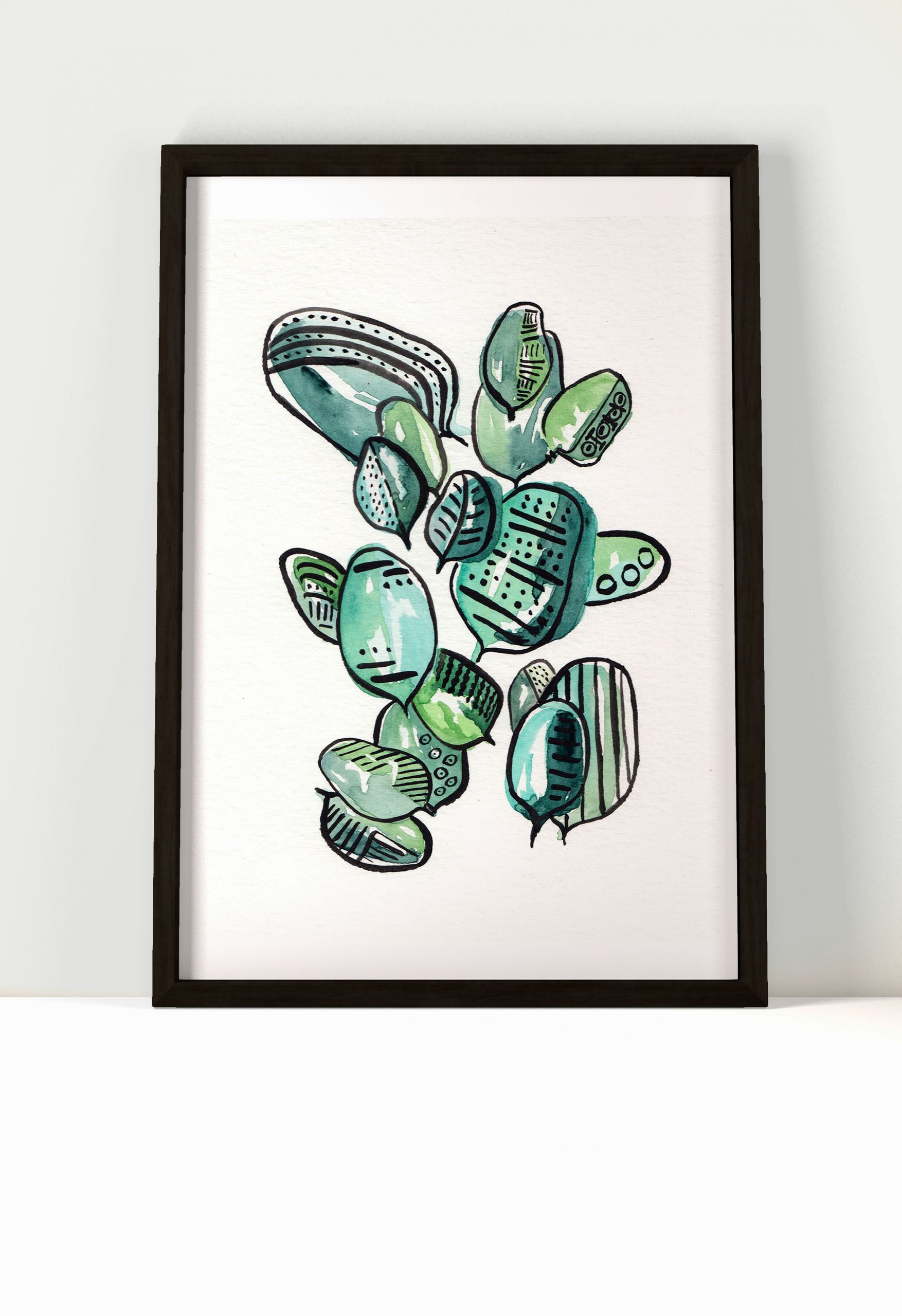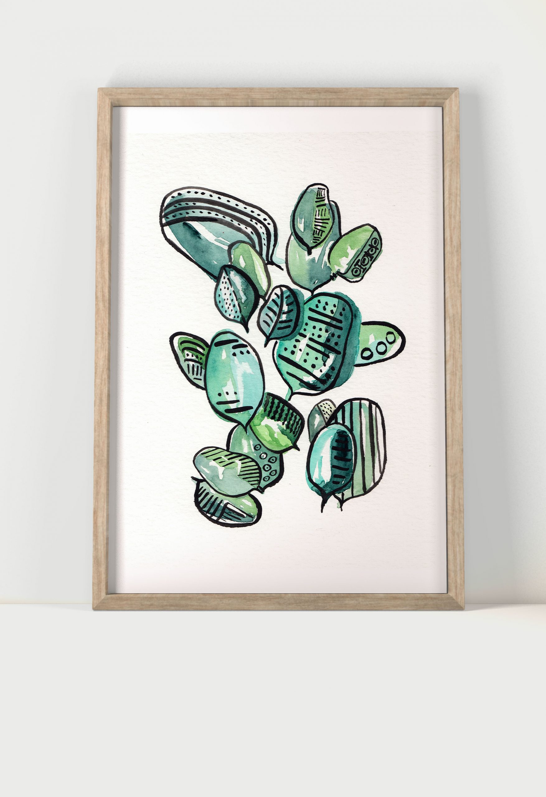 Watercolour painting print Lines On Leaves