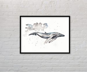 Watercolour painting print Whale